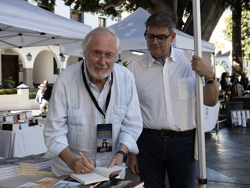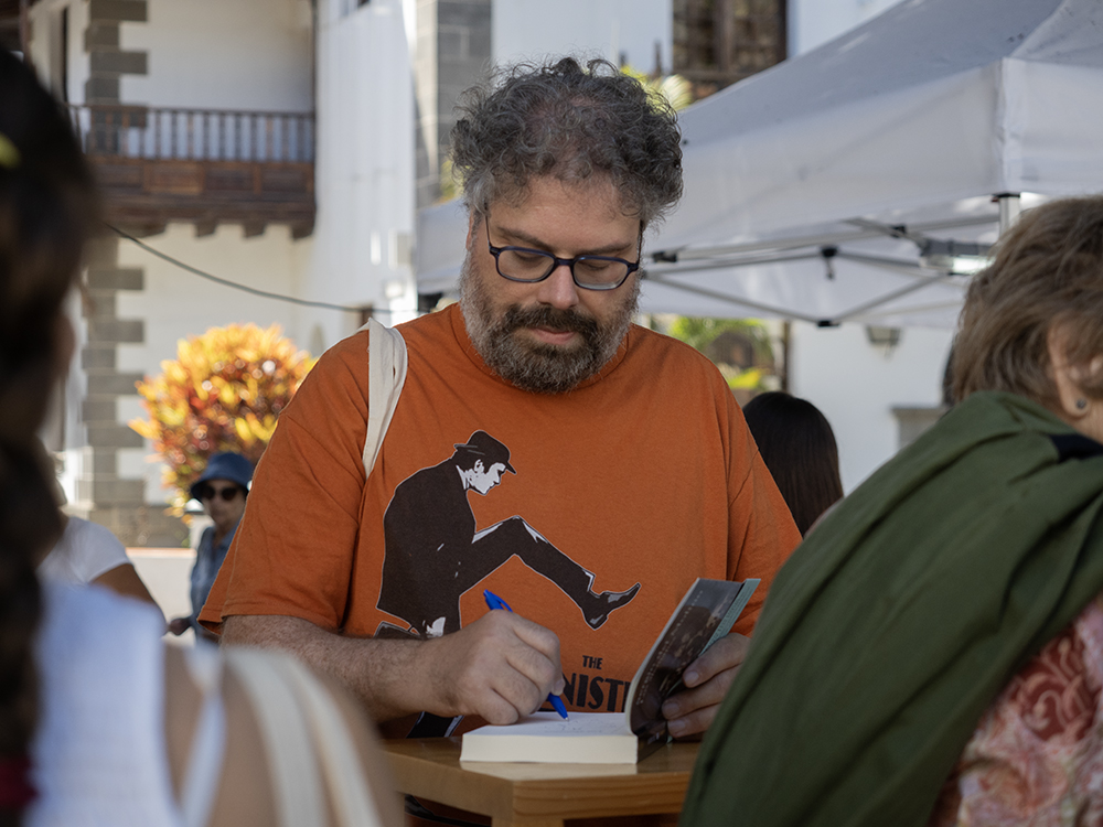 24/09/2025Firman ejemplares de sus libros: Jonathan Allen, Emilio González Déniz, Bruno Mesa, Jesús Ruiz Mantilla, Miguel Ángel Santamarina y Lourdes Ventura.