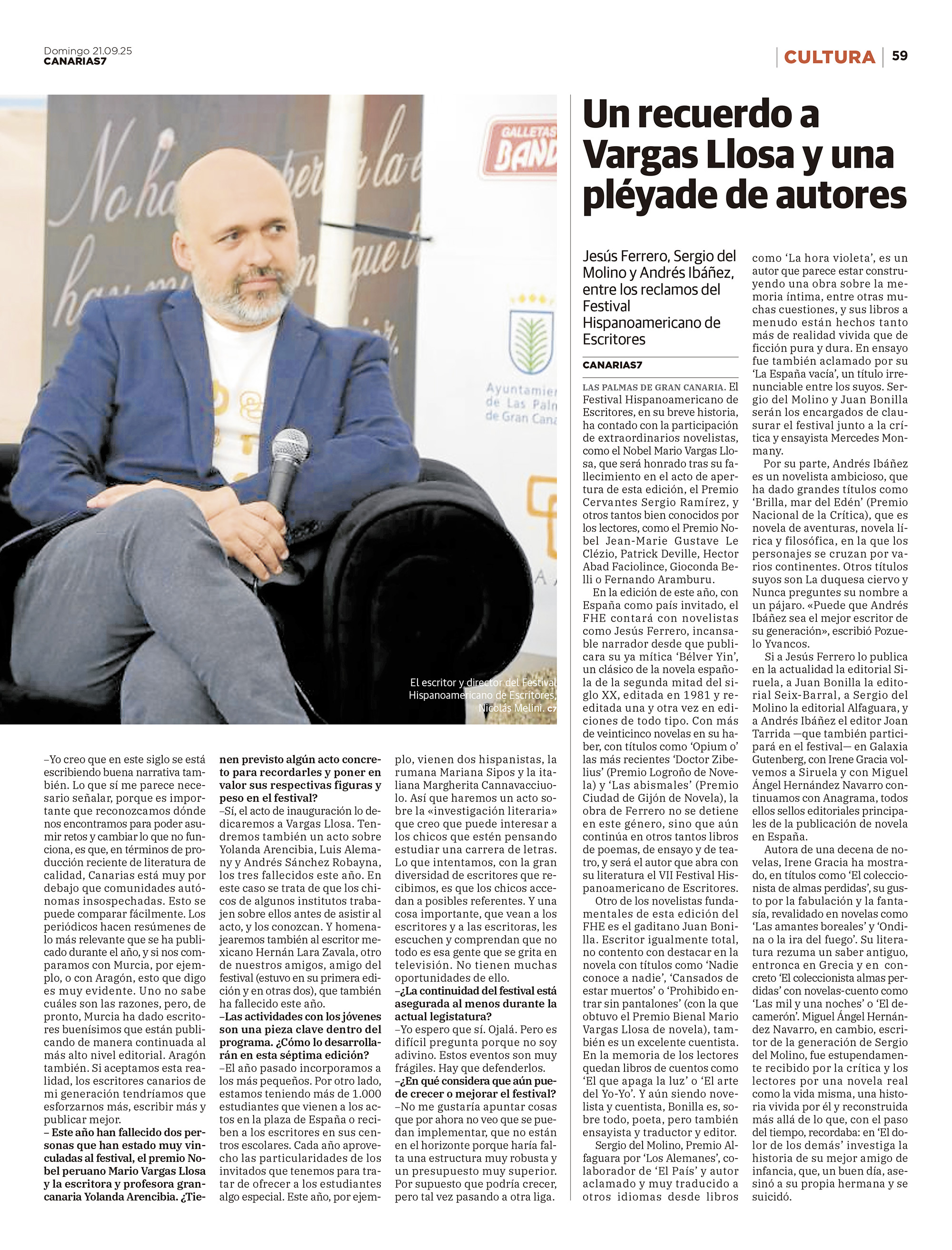 «Primer Festival Hispanoamericano de Escritores promovido por el Ayuntamiento de Los Llanos de Aridane y la Cátedra Vargas Llosa»
