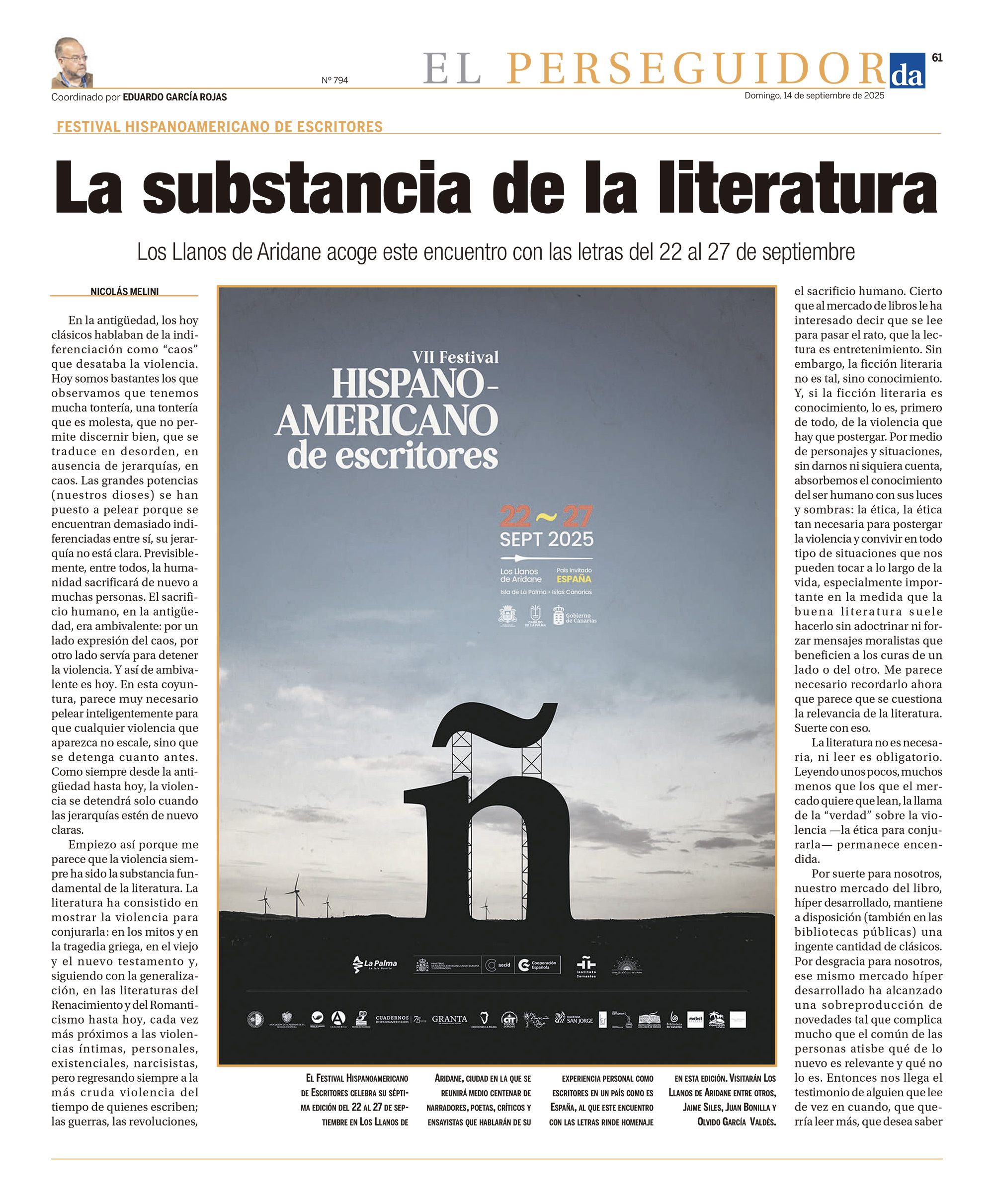 «La revista El rapto de Europa dedica su número de septiembre al Festival Hispanoamericano de Escritores»